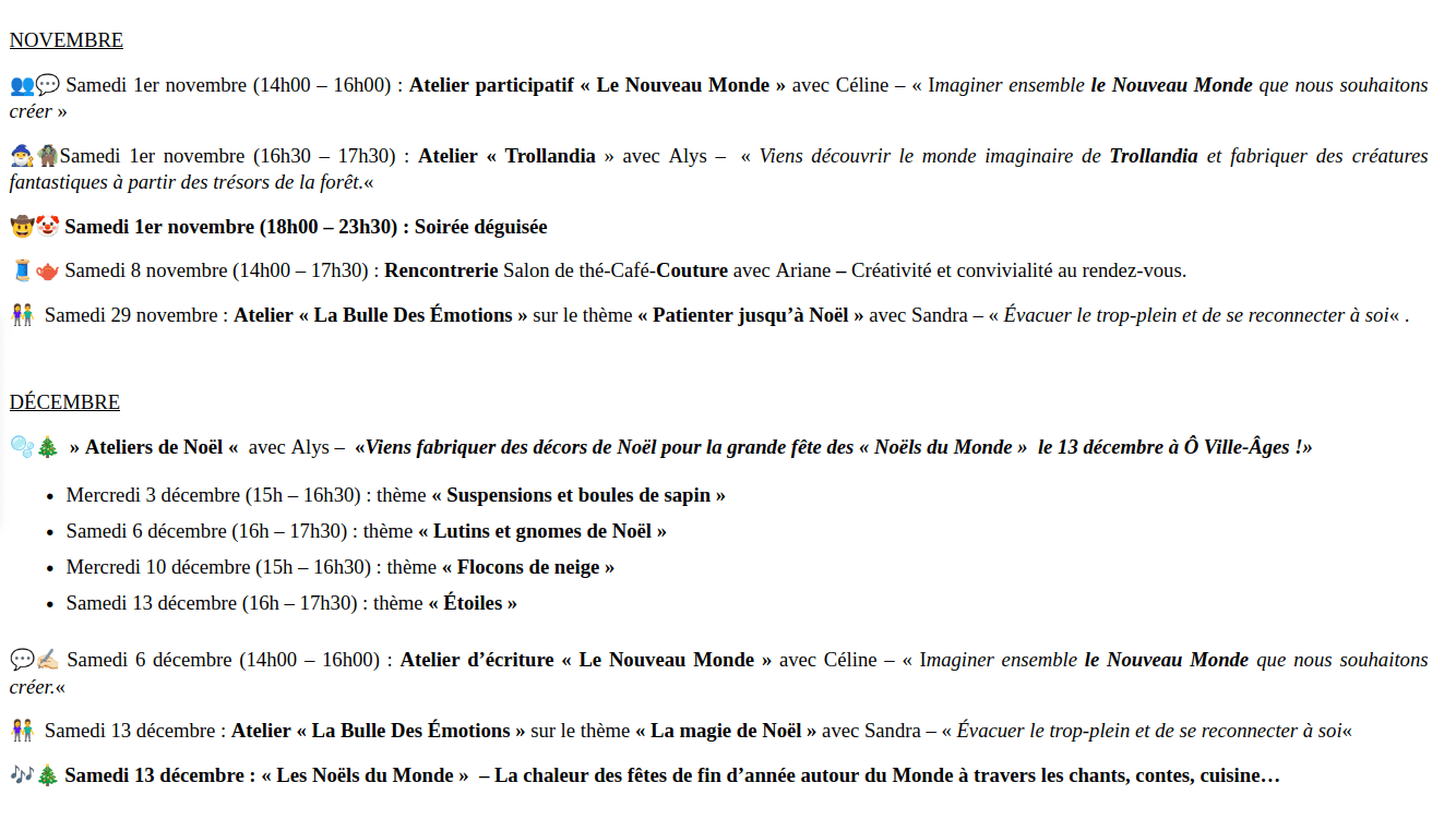 ✨🎨 Notre agenda est mis à jour régulièrement en fonction de vos envies.